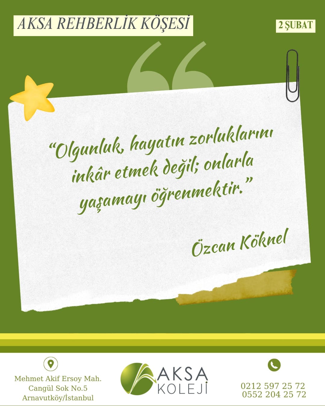 Hayat sana hep kolay davranmak zorunda değil. Acı da olacak, belirsizlik de, düşüş de… Olgun insan bunları yok sayan değil; “ben bunlarla ne yapabilirim?” diye sorabilendir. Çünkü olgunluk, güçlü olmak değildir; gerçek olmaktır. Kaçmadan, inkâr etmeden, kurban rolüne sığınmadan yaşamla temas edebilmektir. Zorluklar geçsin diye beklemek değil; onlar varken de insan kalabilmektir.