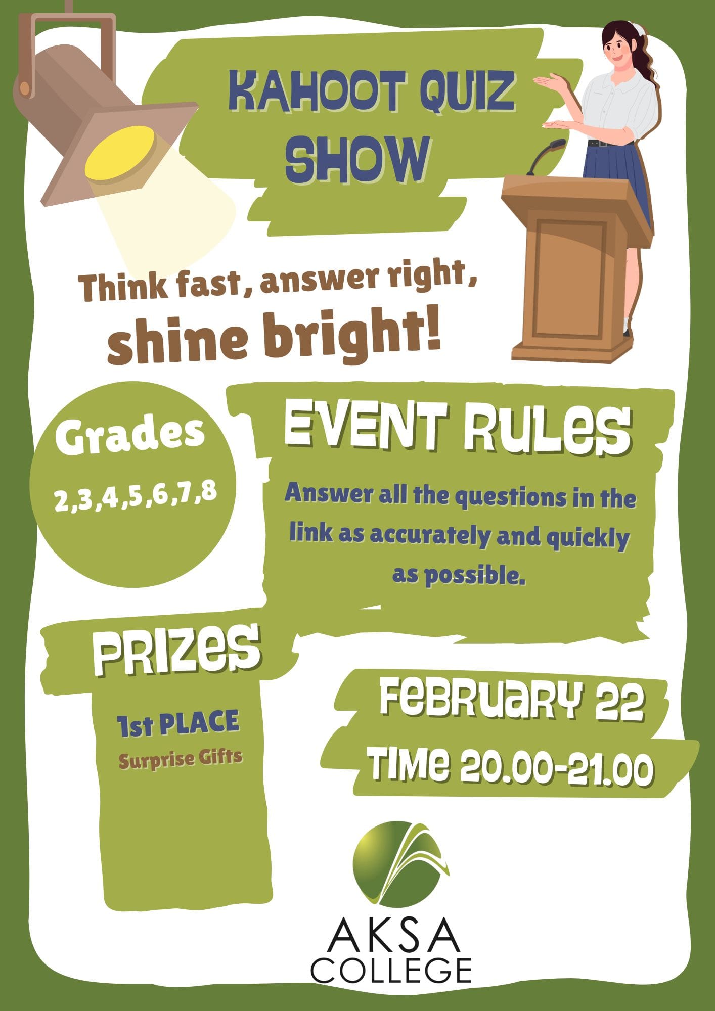 Kahoot yarışması, eğlenceli bir rekabet ortamı yaratmak ve çocuklarımızla birlikte vakit geçirmek için harika bir fırsat! Detaylar ve katılım için;[Arkadaşlar buraya yarışmayı atadıktan sonra bize bir link verecek, onu yapıştıracağız.) üzerinden TELEFON, TABLET